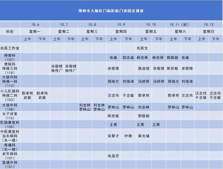 【就诊信息】门诊医生出诊排班表(10月06日——10月12日)