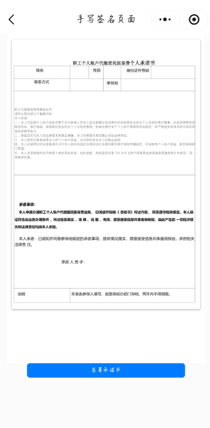 第二步:录入代缴近亲属居民信息,点击 居民查询 ,确认代缴关系,填写联系电话后点击 “保存” ,进入 “签署承诺书” 页面,确认内容并签署承诺书,完成电子签名后确认保存,即可完成代缴。