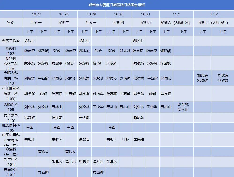 【就诊信息】门诊医生出诊排班表(10月27日——11月2日)
