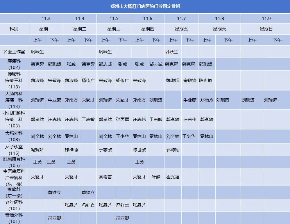 【就诊信息】门诊医生出诊排班表(11月3日——11月9日)
