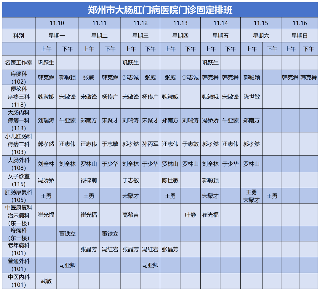 【就诊信息】门诊医生出诊排班表(11月10日——11月16日)