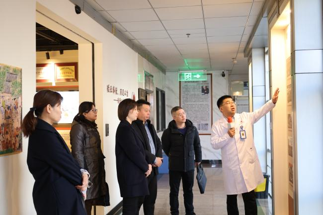 上午9时,交流活动正式开始。在我院党支部组织委员、党办主任梁志平的引导下,颈肩腰腿痛医院同仁先后参观了一楼前后大厅、名医工作室、五楼传承工作室、党建文化廊及实验室等医院文化建设基地。通过实地观摩和讲解,来访嘉宾深入了解我院在挖掘特色诊疗技术、打造党建文化阵地、弘扬非遗传承项目等方面的具体实践与成果。