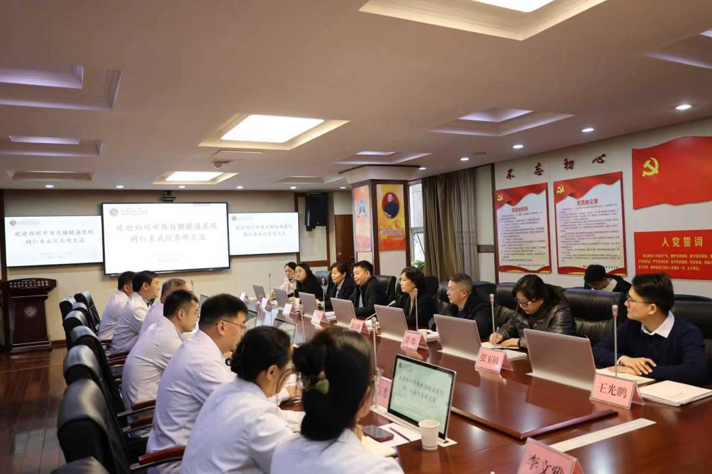 郑州市颈肩腰腿痛医院此次来访团队阵容精干,包括党支部委员、综合办公室主任贾伟,党支部委员、总务科科长、采购中心主任王春荀,以及党办、医务科、人事科等相关职能科室负责人及业务骨干。我院出席交流的还有副院长王勇,医务部主任王玉芳,人事科主任李文雅,科研项目办、非遗传承办负责人杨畅等。