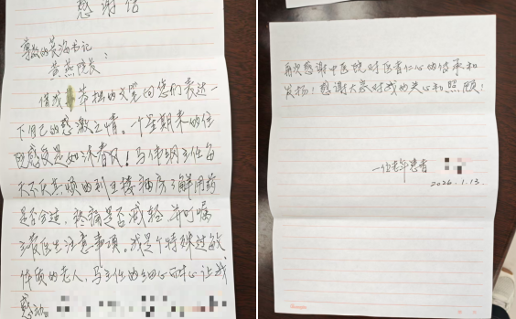 一纸书信 承载七旬患者深情厚谊