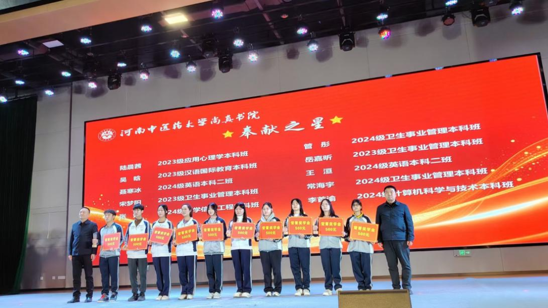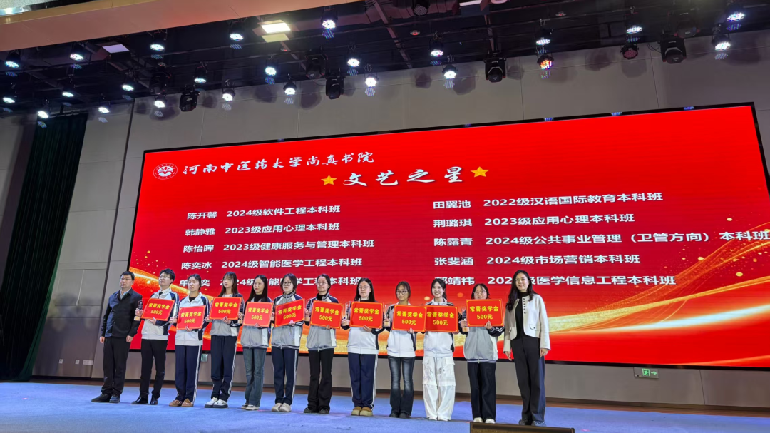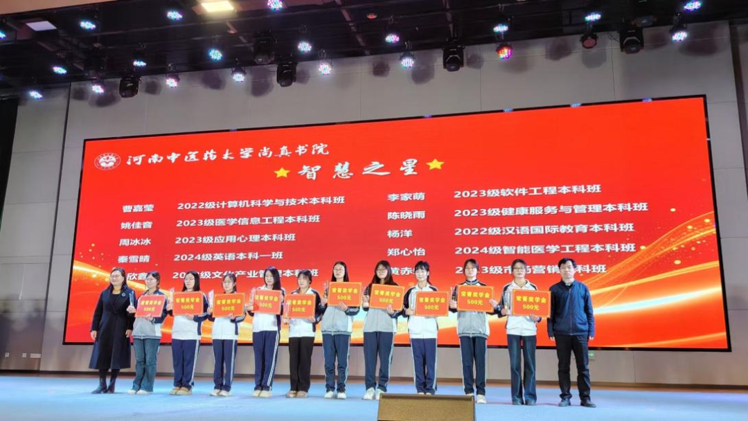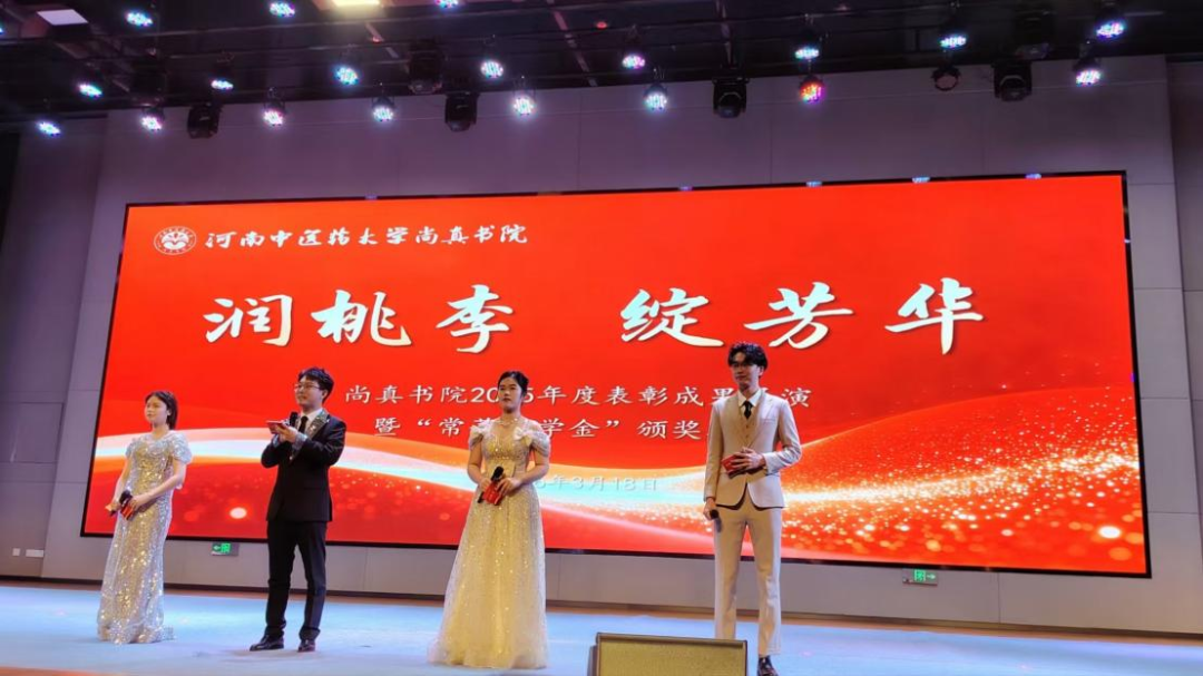 2026年3月18日19时,河南中医药大学尚真书院“润桃李·绽芳华”2025年度表彰成果展演暨“常菁奖学金”颁奖典礼在俊学楼B101隆重举行。书院领导、师生代表及特邀嘉宾齐聚一堂,我院副院长宋聚才、党办主任梁志平(客座导师)、医教办主任刘全林受邀参加,共同见证这一荣耀时刻。
