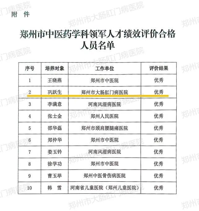 郑州市中医药学科领军人才是郑州市为培育引领中医学术发展、推动行业创新的高层次复合型人才设立的重要荣誉,经严格选拔、动态考核与绩效评价,旨在遴选医德高尚、医术精湛、敢于创新、善于引领的中医药行业“领头雁”。此次顺利通过绩效评价,既是对巩跃生院长个人能力与成果的权威认可,更是对我院中医药学科建设、人才培育与专科发展的充分肯定。