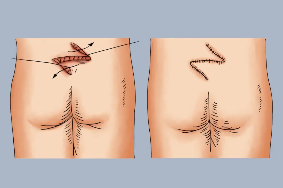 2.囊肿切除术: 适用于非感染期或慢性窦道期,完整切除囊肿及窦道组织,是降低复发率的关键术式;若创面较大,可能需分期缝合或植皮。