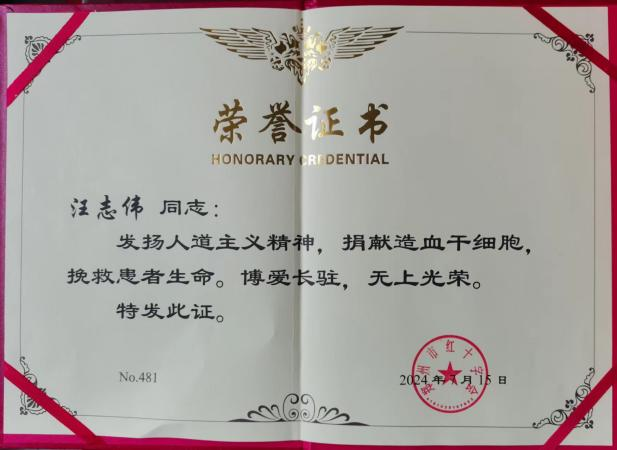 早在2022年,汪志伟曾接到郑州市红十字会工作人员电话,得知自己与一位血液病患者初步配型成功,他当即同意继续进行捐献工作。然而由于患者病情恶化,捐献工作没能继续进行。