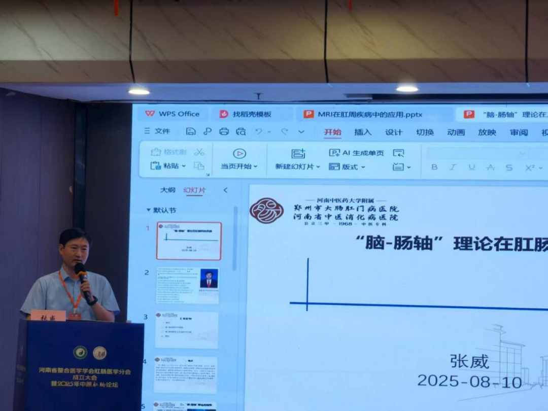 2025年8月9日至10日,“河南省整合医学学会肛肠医学分会成立大会暨2025年中原肛肠论坛”在郑州成功召开。本次盛会由河南省整合医学学会主办,河南省整合医学学会肛肠医学分会与河南中医药大学第一附属医院联合承办,汇聚了省内众多知名肛肠专家,搭建了高效的交流平台。