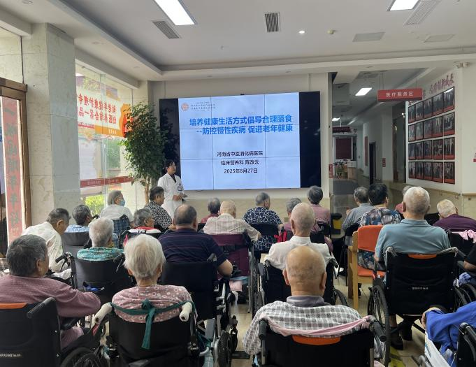 2025 年 8 月 27 日上午 9 时,为切实落地《国民营养计划》“老年营养改善行动” 及郑州市科协重点科普宣传课题要求,一场聚焦老年人健康的营养科普宣教讲座与多学科义诊活动,在管城区爱睦家养老院多功能厅温情启幕。此次活动由郑州市中医药学会主办,河南省中医消化病医院(郑州市大肠肛门病医院)与管城区爱睦家养老院联合承办,养老院副院长于亚茜主持活动,80 余名老年人现场参与,收获专属健康守护。