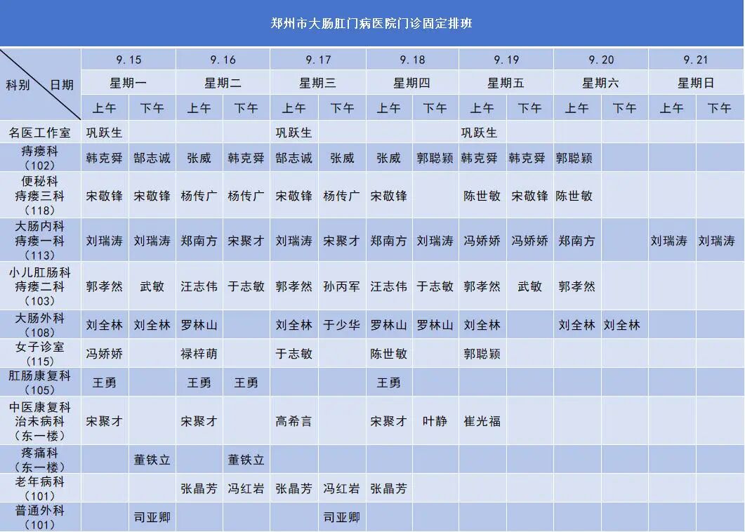【就诊信息】门诊医生出诊排班表(9月15日——9月21日)