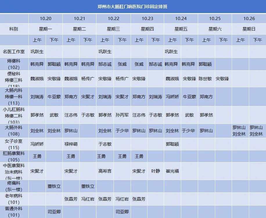 【就诊信息】门诊医生出诊排班表(10月20日——10月26日)