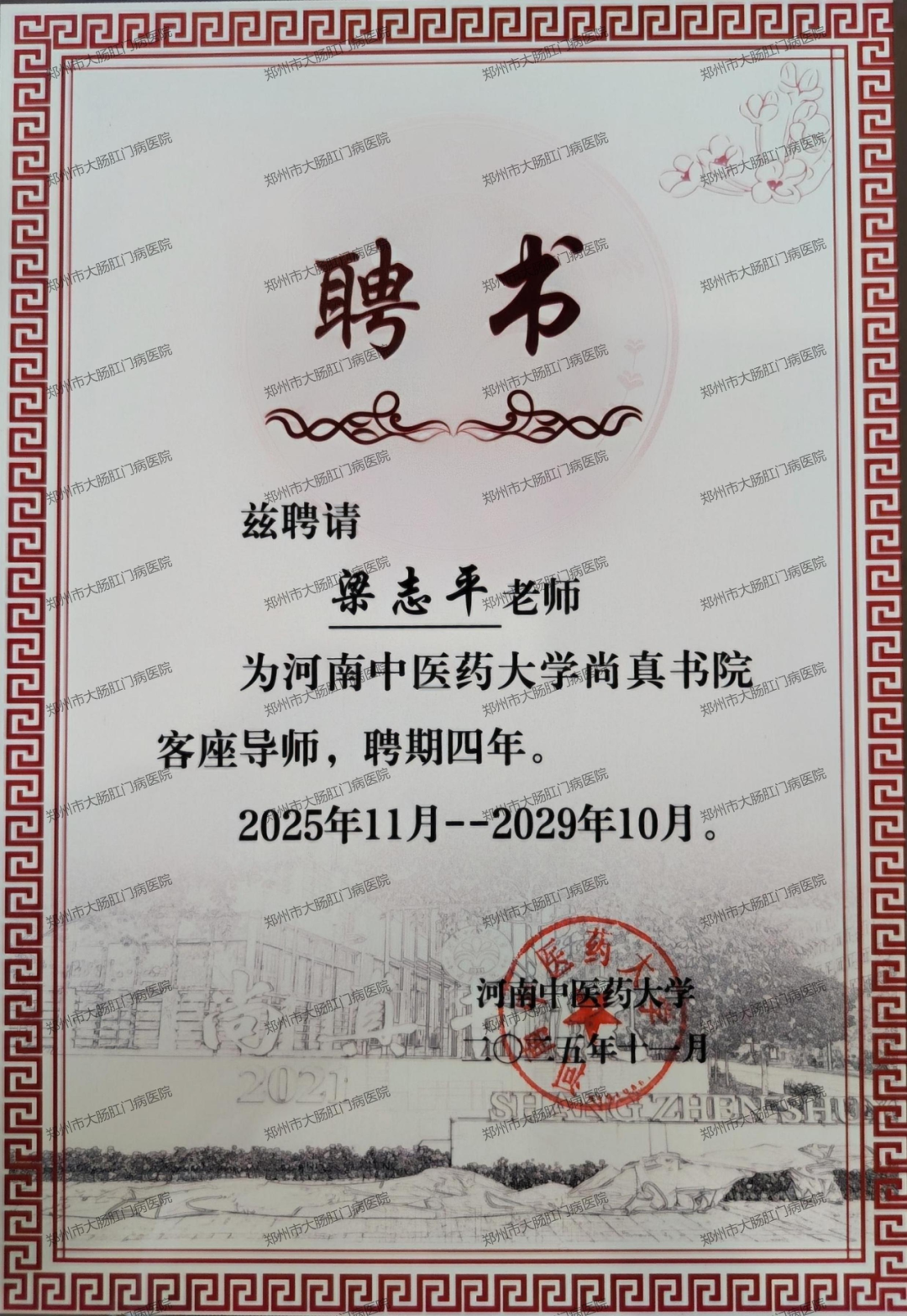 为进一步推动书院制改革,整合优质社会资源,赋能学生全面发展,河南中医药大学尚真书院在会上举行了客座导师聘任仪式。我院梁志平主任与赵雪茹副科长被正式聘为该书院“客座导师”。