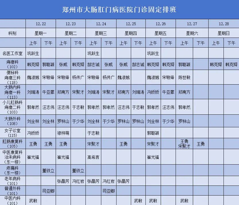 【就诊信息】门诊医生出诊排班表(12月22日——12月28日)