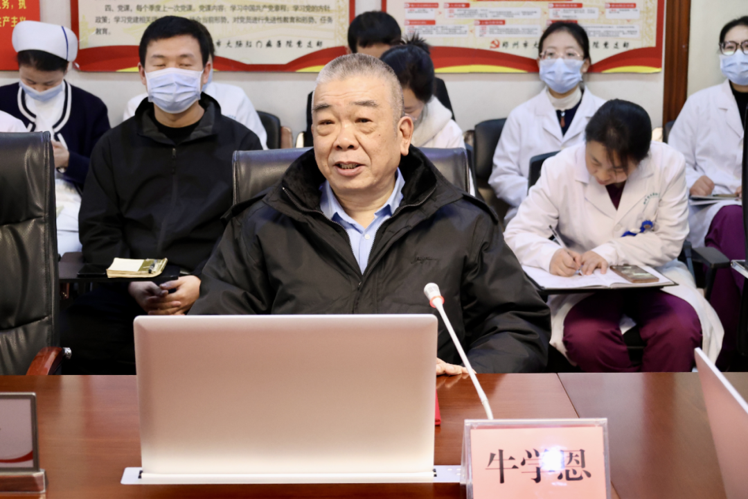 随后,牛学恩教授发表讲话。他衷心感谢医院的信任与邀请,表达了对医院专科特色与发展理念的认同。他表示,将珍惜这一平台,致力于将“豫中腹诊”学术流派的精髓与医院的临床实践相结合,通过带教传承、学术研究等方式,培养后备人才,深化技术应用,积极探索该流派在更广泛疾病领域的诊疗价值,切实为提升医院中医药服务能力、造福患者贡献力量。