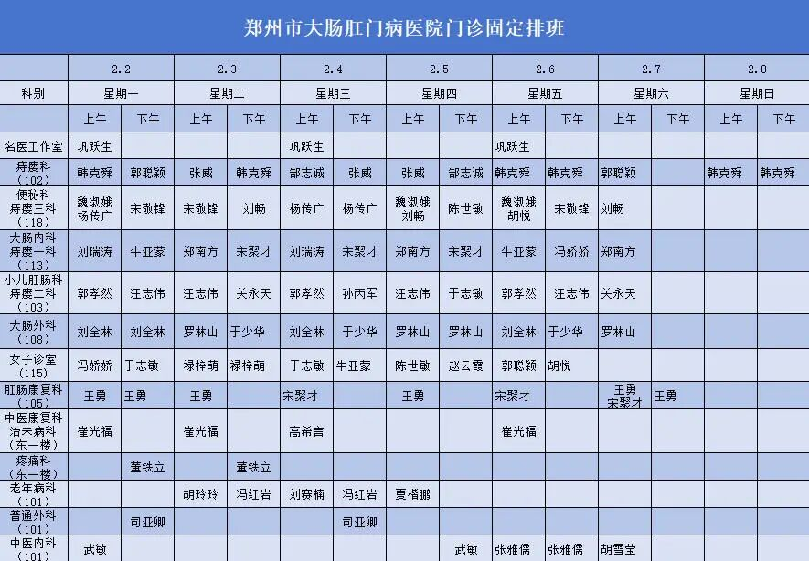【就诊信息】门诊医生出诊排班表(2月2日——2月8日)