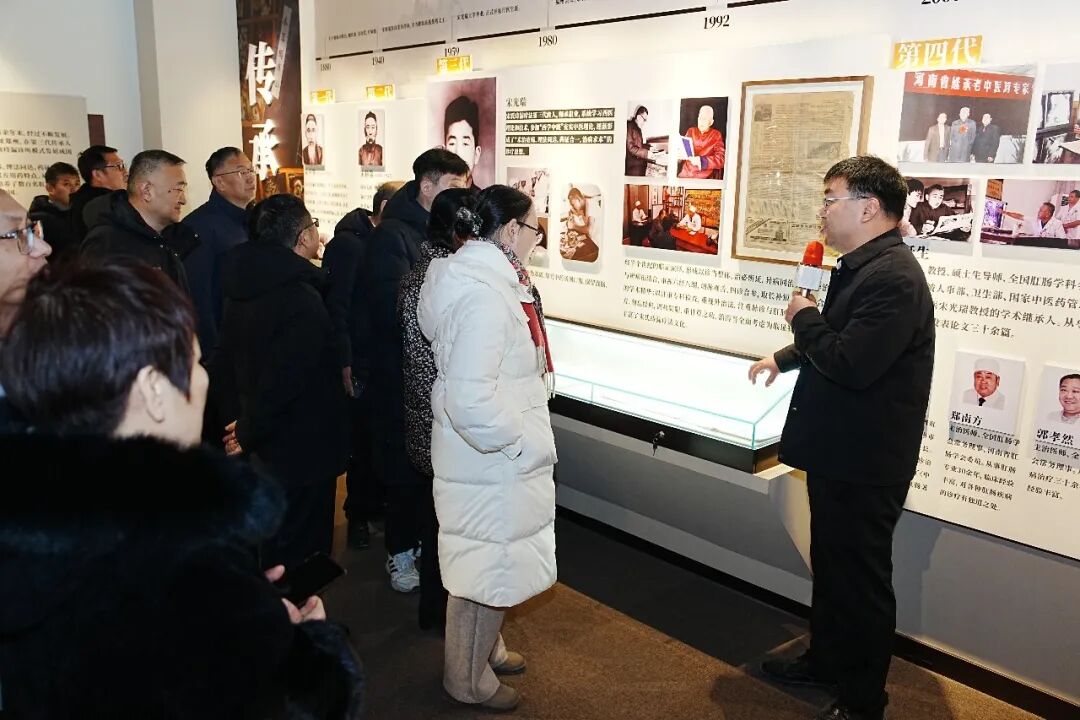 随后,一行人移步陇海东路院区(本院部)。在院党支部组织委员、党办梁志平主任的细致解说下,大家依次参观了门诊大厅、庭院建设、住院部大厅、名医工作室、中药房,以及住院病区的医护办公室、文化长廊、传承工作室(院史馆)、重点实验室、实验动物中心和信息化数据中心等重点区域。从承载着历史记忆的院史馆,到接轨前沿的重点实验室,大家在探访中既重温了宋光瑞老院长开创宋氏痔漏疗法的初心,也见证了医院在传承中创新、在守正中发展的坚实步伐。