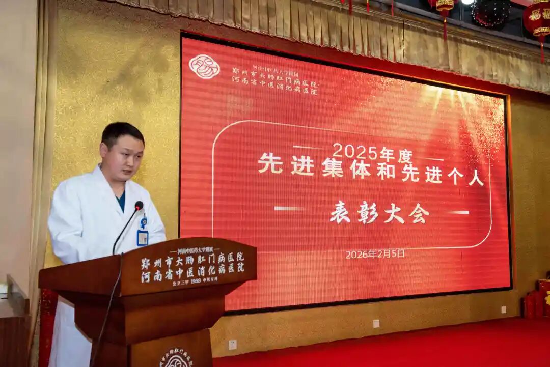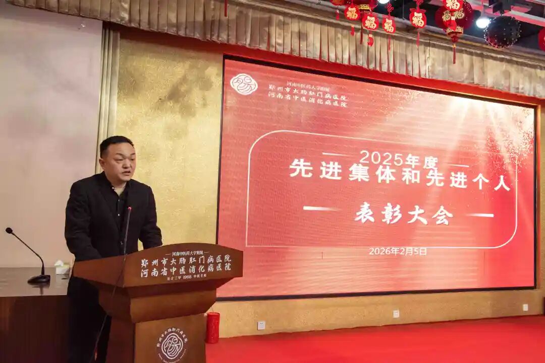 硕果累累辞旧岁,意气风发迎新年。2026年2月5日下午,郑州市大肠肛门病医院2025年度评优评先表彰大会在医院六楼会议厅隆重举行。医院领导班子成员、各科室负责人及职工代表齐聚一堂,共同回顾过去一年的奋斗历程,表彰先进,展望未来。大会由宋聚才副院长主持。
