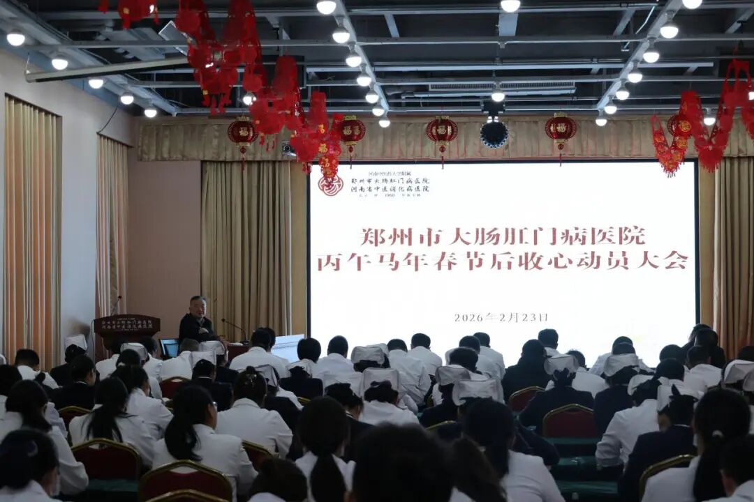 号角已吹响,奋进正当时。此次新春开工早会,既是收心会、动员会,更是鼓劲会、部署会,进一步凝聚了全院职工的思想共识,激发了干事创业的昂扬斗志。新的一年,郑州市大肠肛门病医院全体职工将以此次会议为契机,把新春的美好期许转化为工作的实际行动,以三马精神为帆,以实干担当为桨,凝心聚力,以更专业的医疗技术、更优质的医疗服务守护百姓肛肠健康,为医院高质量发展再谱新篇!