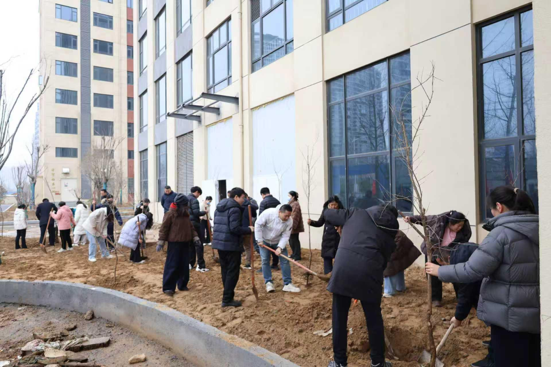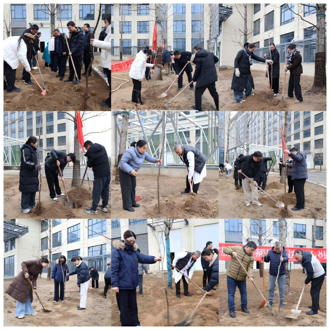 上午9时,来自各科室的女性职工代表、院领导、党员代表及科室负责人准时在陇海东路院区集合,统一前往管南祥和路院区活动现场,大家分工协作、干劲十足,挥锹铲土、扶苗浇灌,有条不紊地完成每一个环节,齐心协力种下一株株象征希望与生机的树苗,以实际行动为新院区增添一抹新绿。