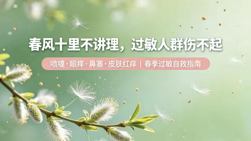 “有这么一群人,此刻却在崩溃的边缘。忽如一夜春风来,到处都是过敏原。鼻子眼睛奇痒无比,眼泪鼻涕随风飞起。春风十里不讲理,从头到脚痒痒你。咳嗽不断,喷嚏不停,吃药不灵,日夜不宁。一提出门,就说不行”。这份春天里的痛,恐怕只有过敏的人才能心知肚明,感同身受。