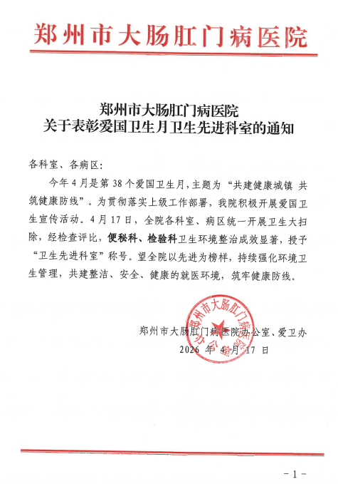 此次爱国卫生月系列活动,不仅全面改善了医院诊疗环境与卫生面貌,更进一步强化了全院职工的健康防护理念与责任意识。下一步,郑州市大肠肛门病医院将以本次活动为契机,持续巩固爱国卫生整治成果,健全院内环境卫生长效管理机制,常态化开展健康宣教、环境清扫、病媒防制等工作,紧扣“共建健康城镇、共筑健康防线” 活动宗旨,坚守医疗初心,守护医患健康,以整洁优质的医疗环境、严谨规范的院内管理,为群众肛肠健康保驾护航。