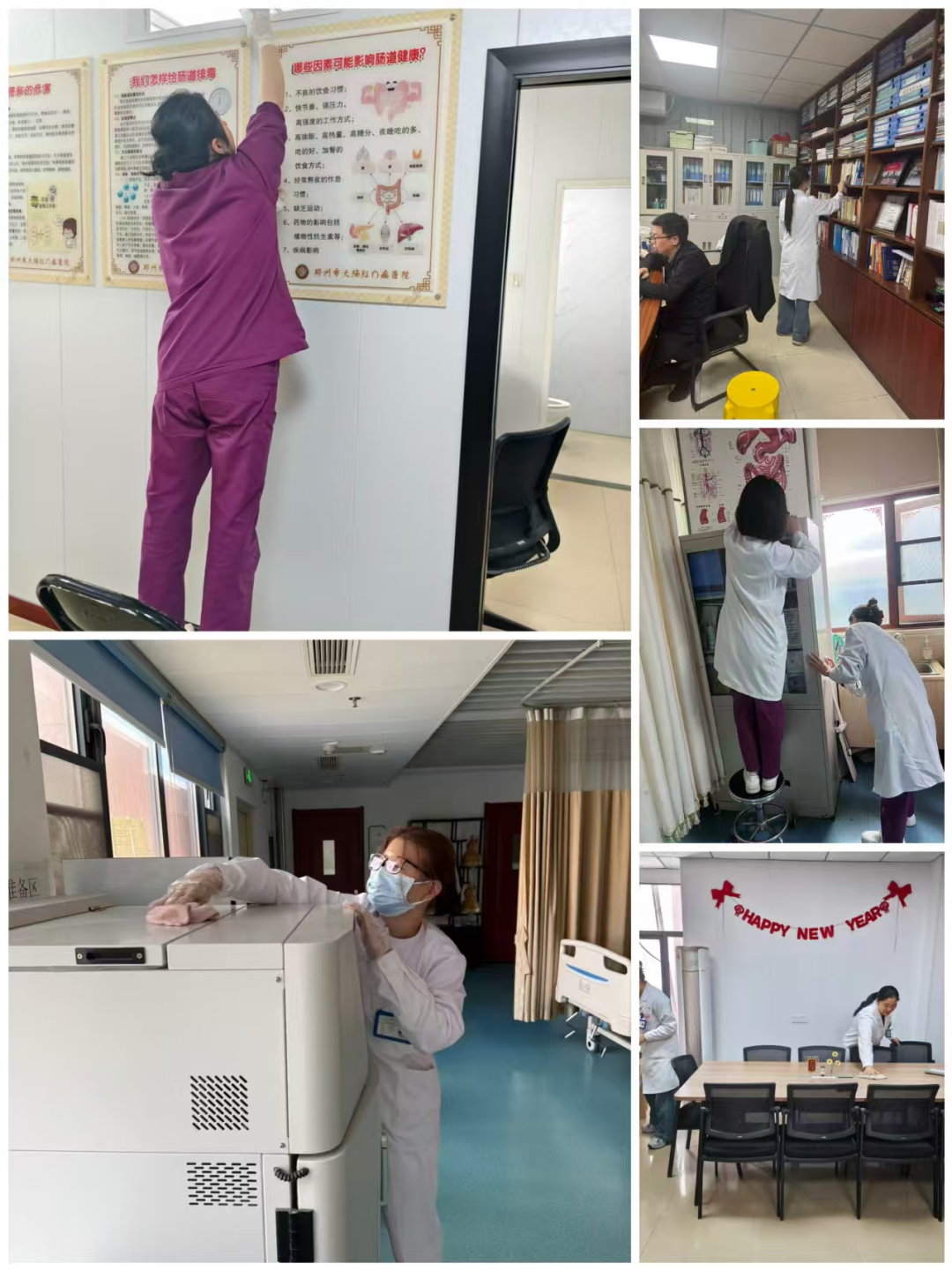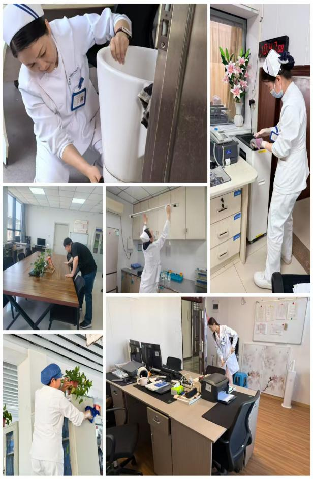 为切实落实环境整治工作,4 月 17 日,我院组织全院各科室、各病区同步开展全覆盖卫生大扫除专项行动。全院职工积极响应、全员参与,聚焦诊疗区域、病房病区、办公区域、走廊通道、设备仪器、公共卫生间、消防角落等重点区域,开展全方位清扫、精细化擦拭、无死角消杀。医护人员认真清理墙面宣传栏、医疗设备、储物柜、办公桌椅,细致清扫地面角落、门窗缝隙,规范整理物资摆放,养护院内绿植环境,对高频接触点位进行清洁消毒,从细节入手净化院内就医空间,用实干改善就医环境,将爱国卫生理念落实到日常工作的每一处细节。